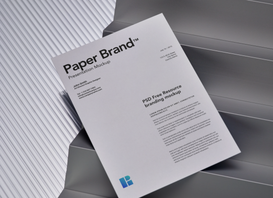 Crea proyectos impactantes con este modelo PSD en papel de presentación. Ideal para mostrar branding con un toque profesional. Disponible en el sitio LP Mockups.