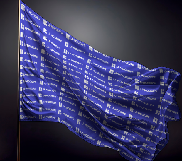 Bandeira em movimento em fundo preto mockup s1c1