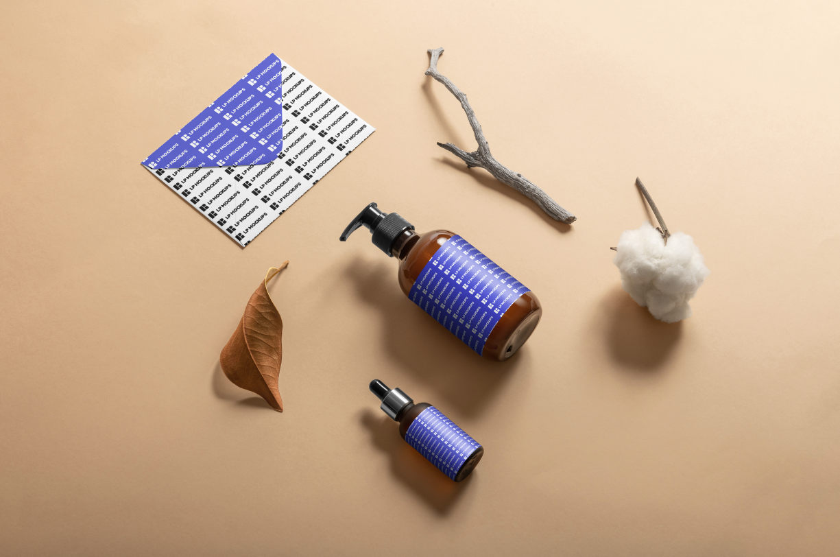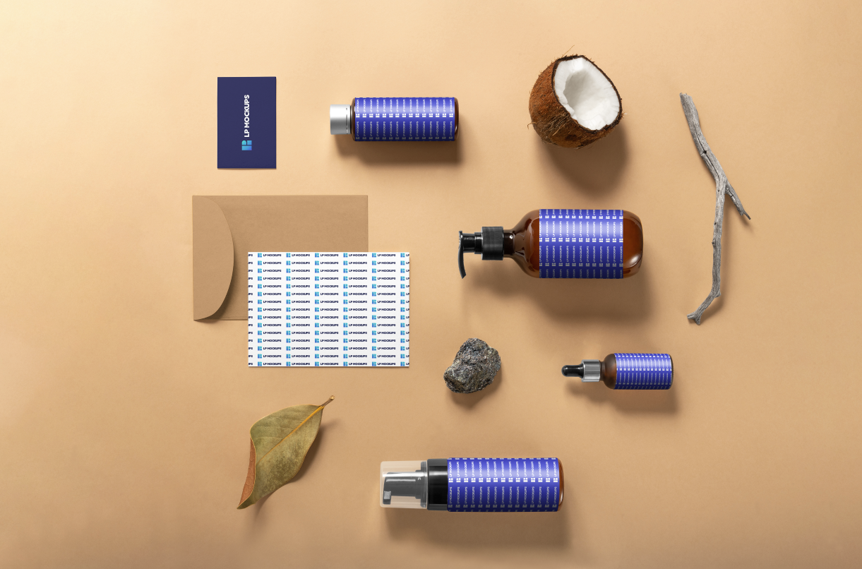 Cosmetic card and envelope on beige background mockup s1c1